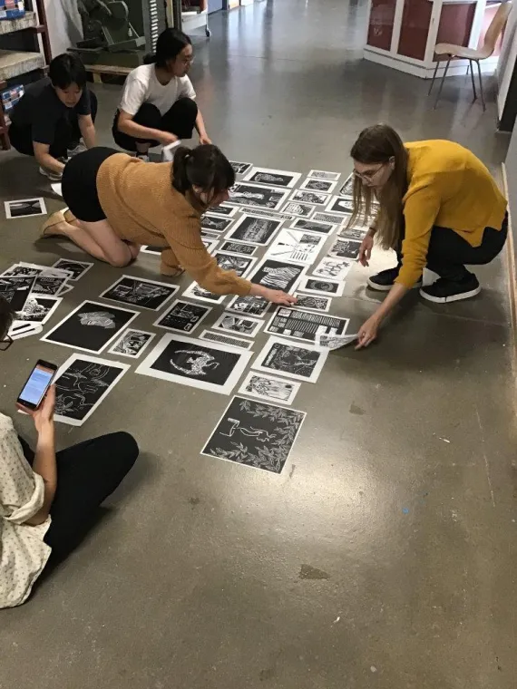 In Holz- oder Linolschnitten halten wir individuelle Eindrücke der Gegenwart fest. Dabei sind viele Vorgehensweisen möglich: das Reproduzieren von News, das Illustrieren des Alltags oder das Ausdrücken von eigenen künstlerischen Sprachen. Am Ende sollen die Grafiken in einer zeitungsähnlichen Publikation zusammengebracht werden. Hierfür werden die entstandenen Originalgrafiken mit billigeren Vervielfältigungsverfahren, wie z. B. Schwarzweiß-Kopie, in Auflage produziert. Die wesentlichen gestalterischen Elemente des Holz- und Linolschnitts bleiben auf diese Art bewahrt. Gleichzeitig wird Druckgrafik für alle zugänglich, bzw. erschwinglich gemacht. Die Studierenden nehmen ihre eigenen Grafiken und die kollektive Drucksache aus dem Kurs mit.