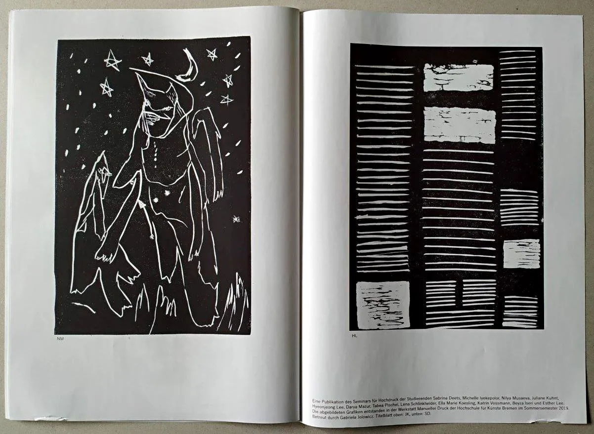 Interessierte Studierende sollten unbedingt abwägen, ob sie parallel am Workshop „Artists as Independent Publishers“ im November teilnehmen. Das Verbinden von Hochdruck mit anderen Drucktechniken, wie zum Beispiel Siebdruck oder Risographie, wird durch den Workshop ermöglicht. Ziel ist es, im Zeitfenster des Workshops ein Künstlerbuch umzusetzen. Achtung: Anmeldung für AAIP erfolgt unabhängig von diesem Kurs; es gibt nur begrenzt Plätze.
