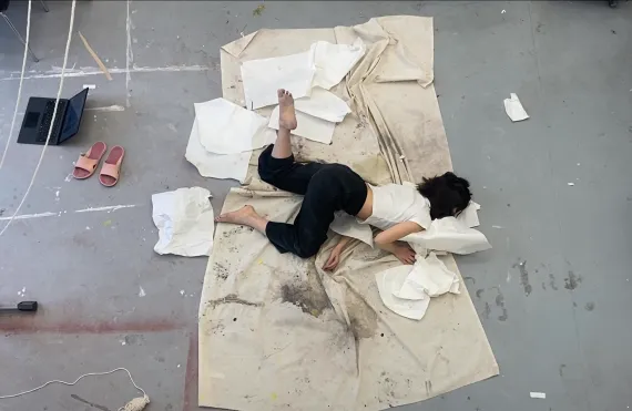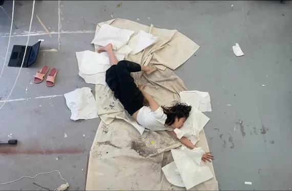 When visualizing my mind in a certain medium, some parts are inevitably missing or distorted. In part this is due to the large variety of influences, which includes what I hear, smell, touch and taste. In search of a way to transport the inward outward without losing its freshness and purity, I’ve come to the decision to concentrate on the movement of my body, as the use of different materials and mediums can cause distraction and inhibit the process. By merging body and mind, chaos is calmed, and emotions flow from the body into movement.